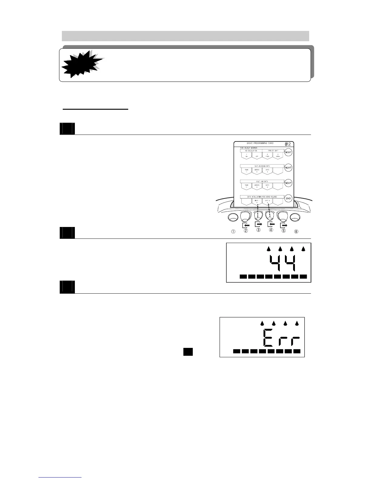 To abort the operation, enter the password "00" or "99" and then press button ⑥. The programming card