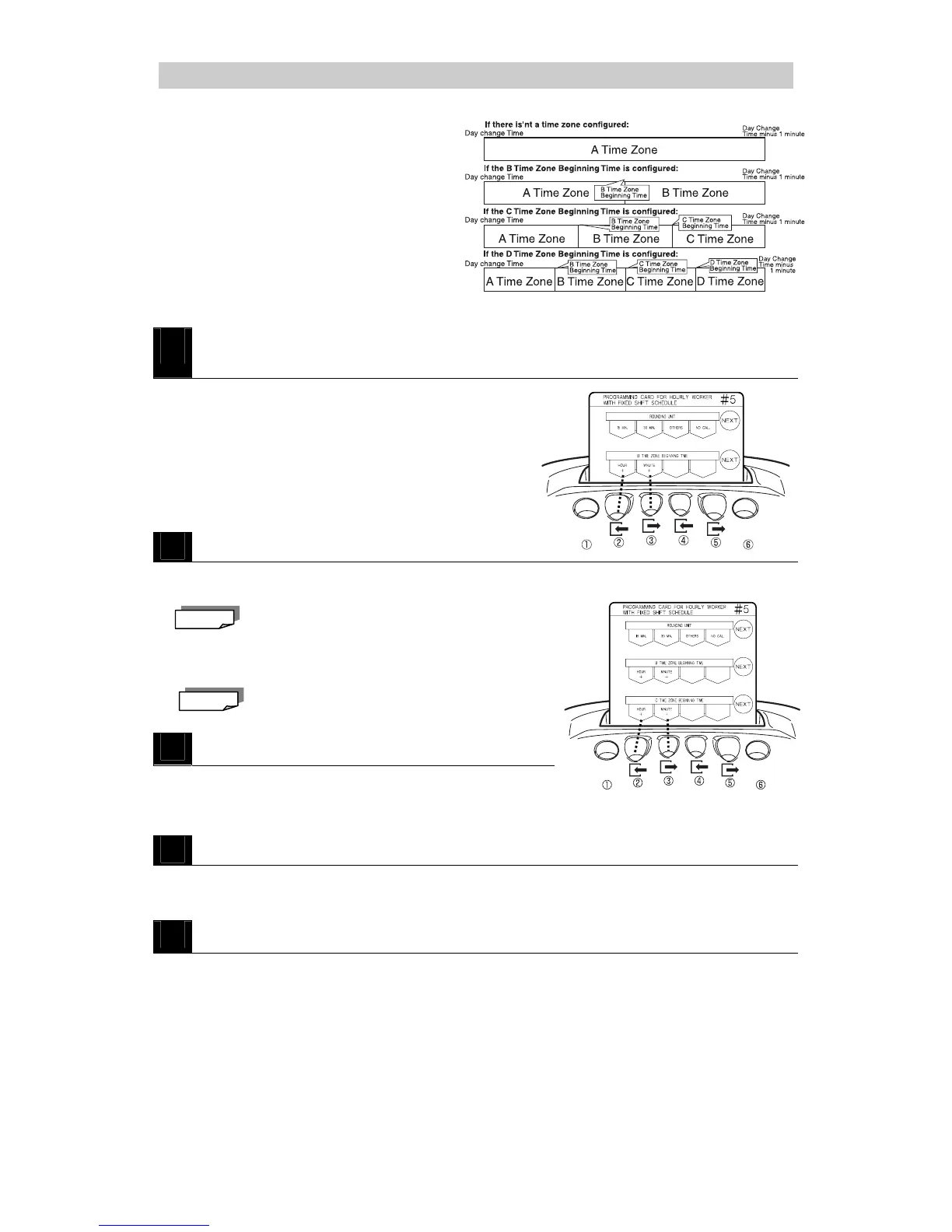 ・Press NEXT (button ⑥) until the card is positioned to D Time Zone then press END (button ⑥) to