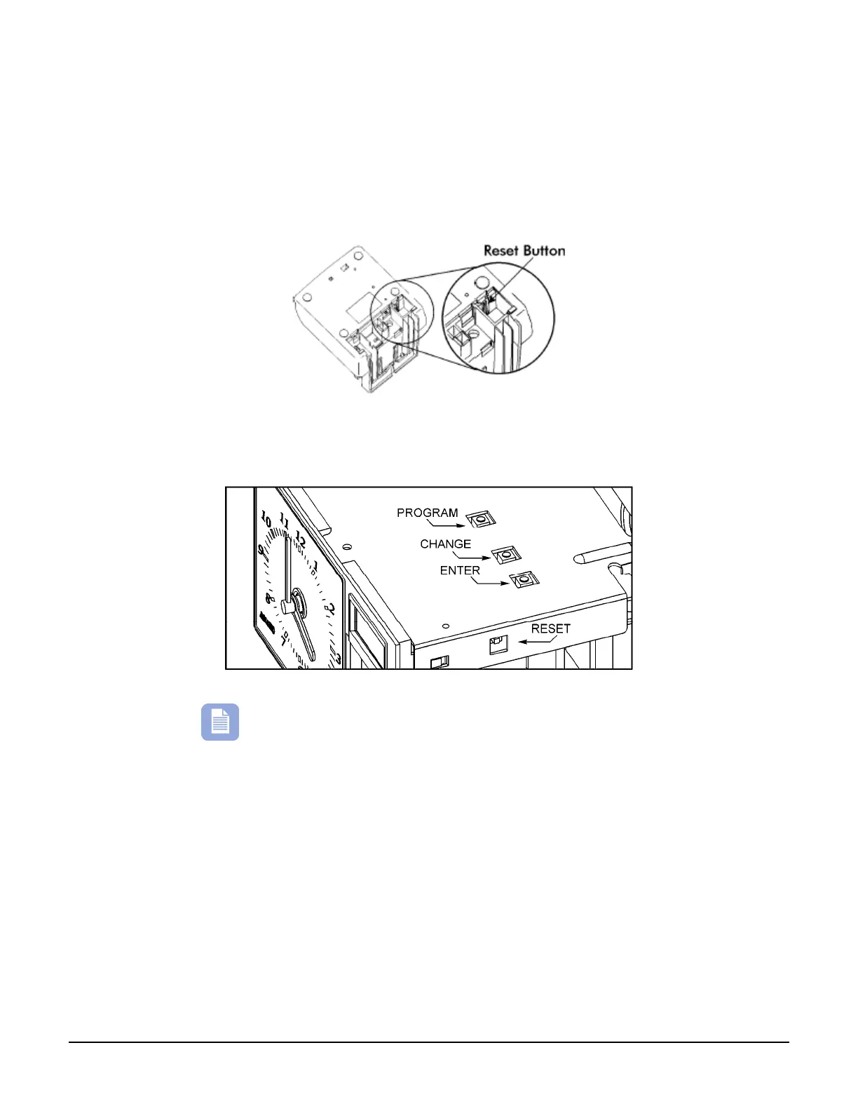 The following figure illustrates the RESET button location, for the Amano PIX-10, PIX-15, PIX-21, PIX-