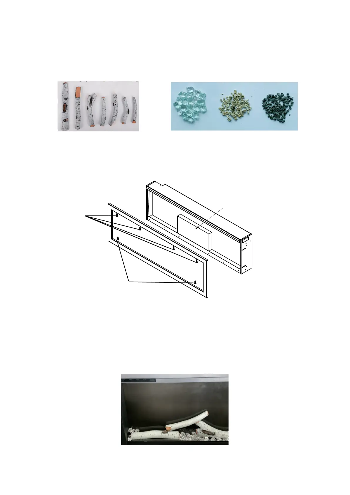 Unscrew 4 screws to take off the trim and get out the log set. (NOTE: Keep hold of the front