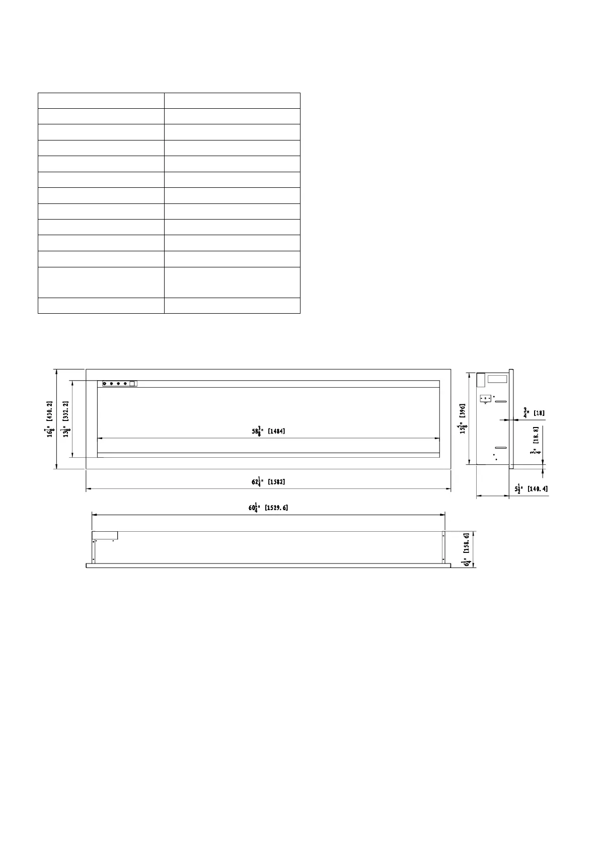 Appliance Width 60 1/4” or 153 cm