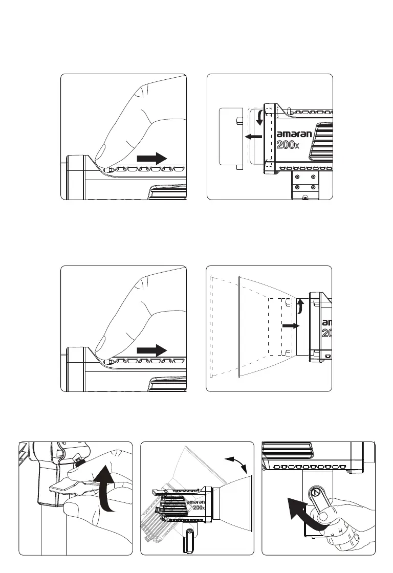 amaran 200x - Installations; Protection Cover Installation; Reflector Installation; Light Setup on Tripod