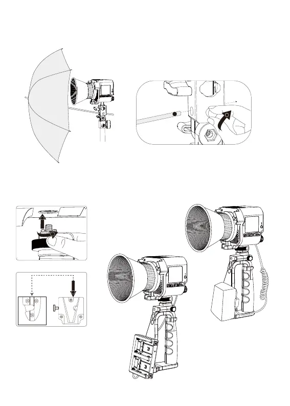 amaran 60x - Soft Light Umbrella Attachment; Battery Handle Installation