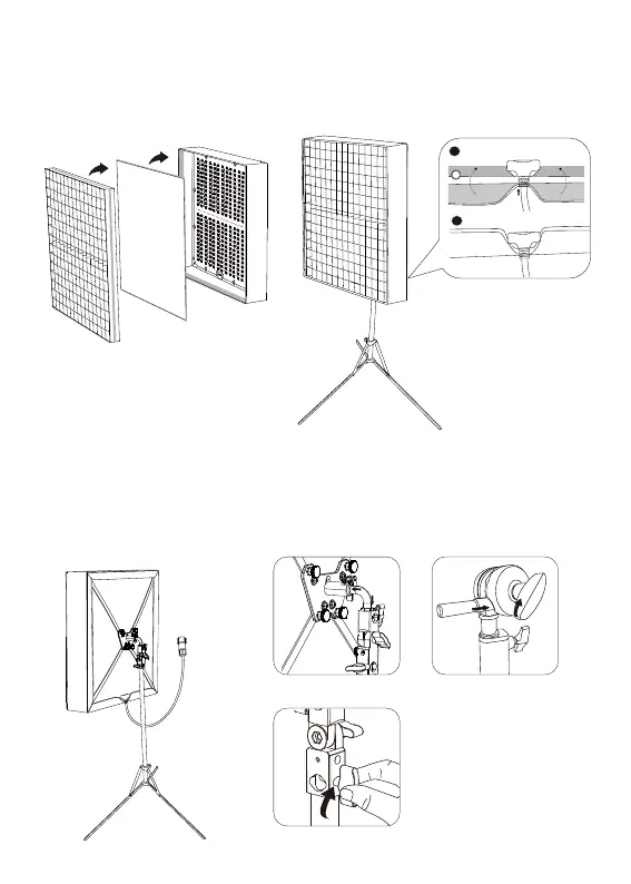 the power cord. Then attach the velcro of the lamp body and the soft box in turn and