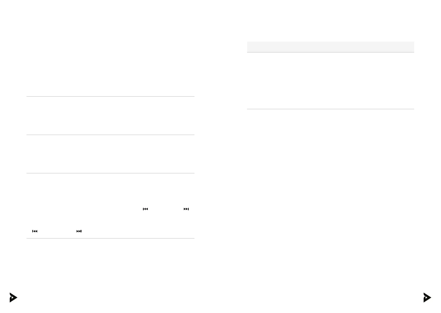 To skip back or forward in your song list, press and hold the Volume -/