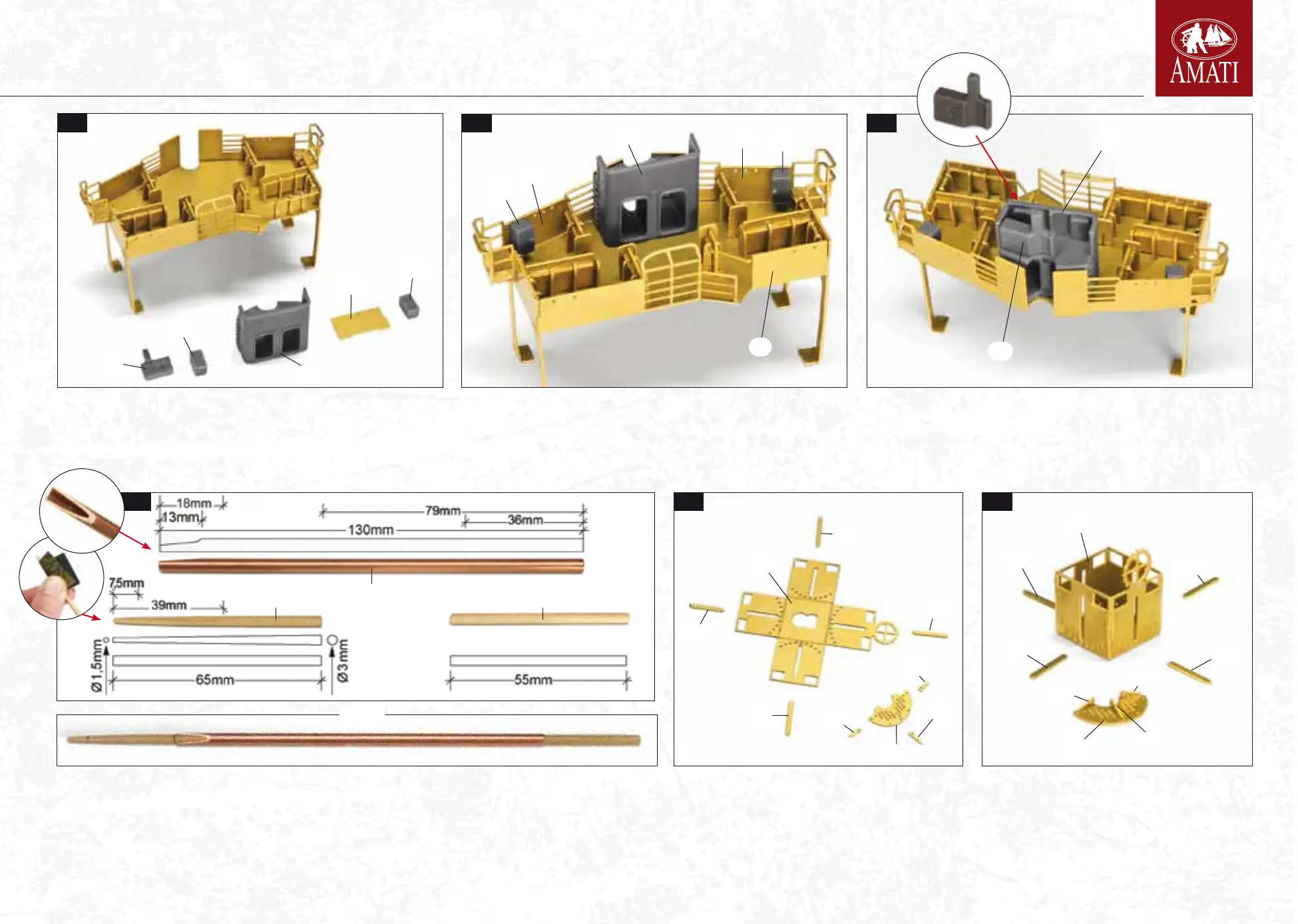 758-759 Remove the pieces shown in the picture for the assembly of the crow’s nest and the platform of the mainmast from