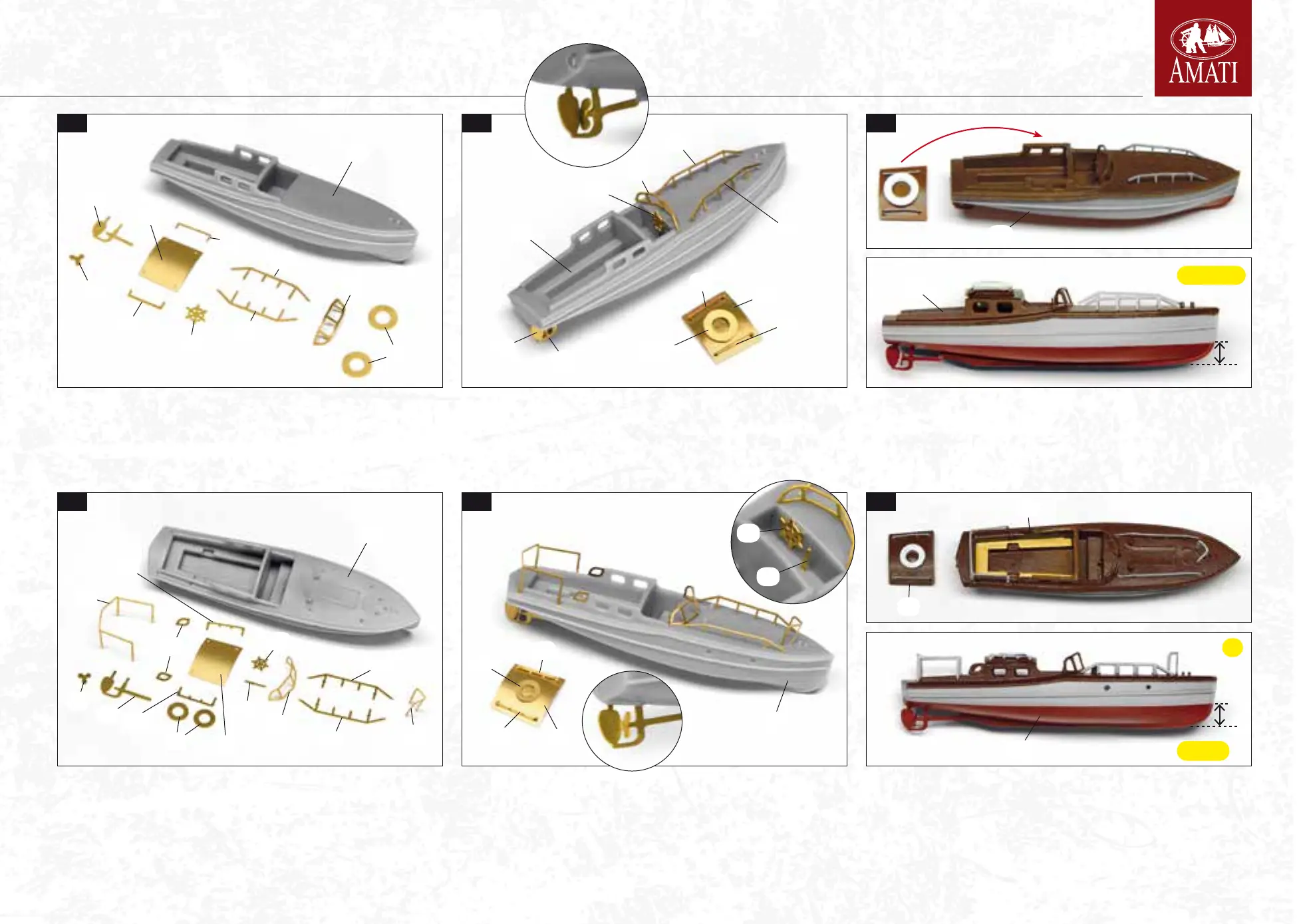 for tting the handrails, railings and propeller shaft. Then glue the accessories in place
