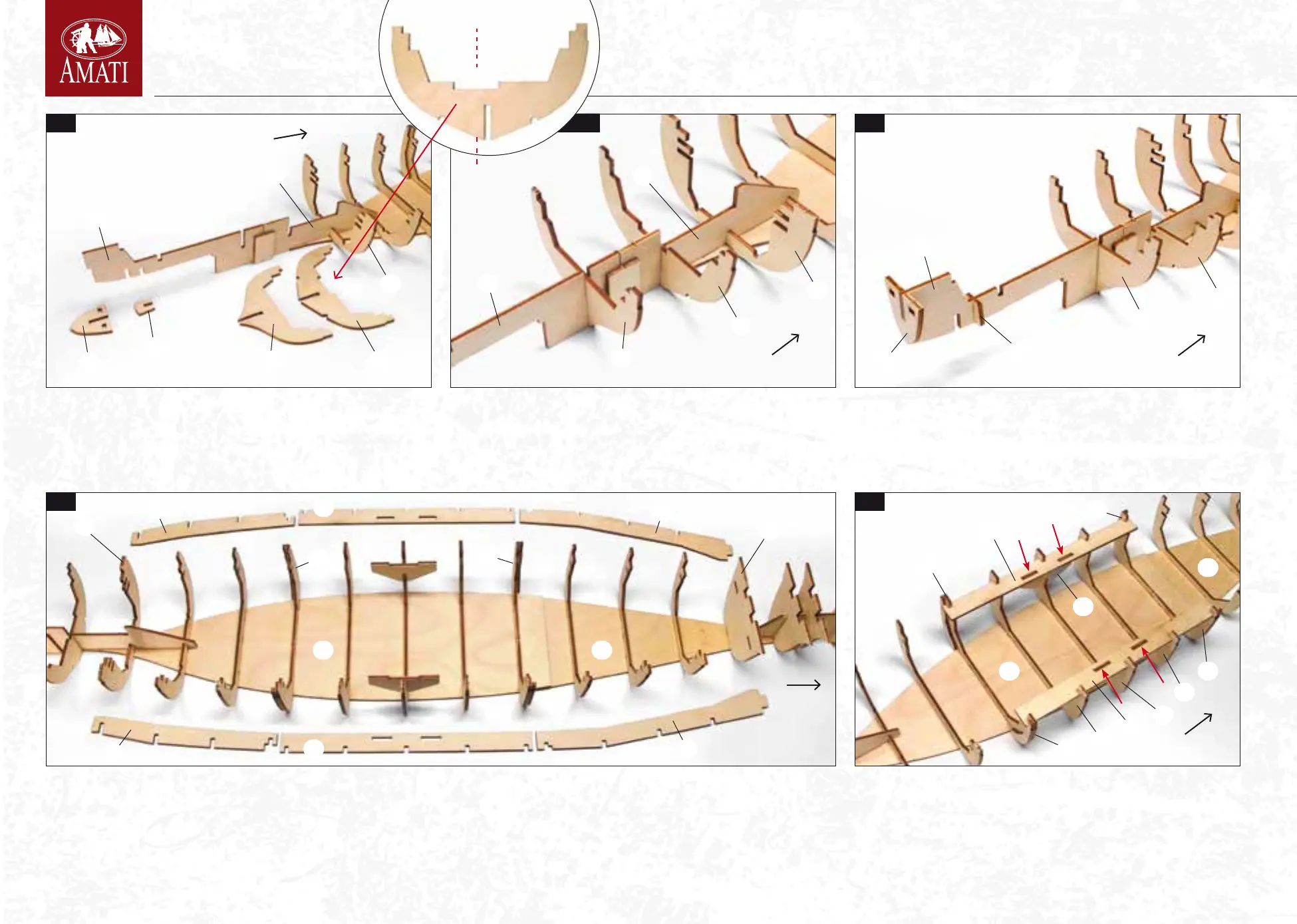 020 Apply wood glue inside the central joints of the bulkheads, then insert bulkheads