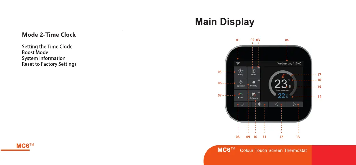 AMATI MC6 - Thermostat Mode Operations; Mode 2-Time Clock; Setting the Time Clock; Boost Mode Functionality