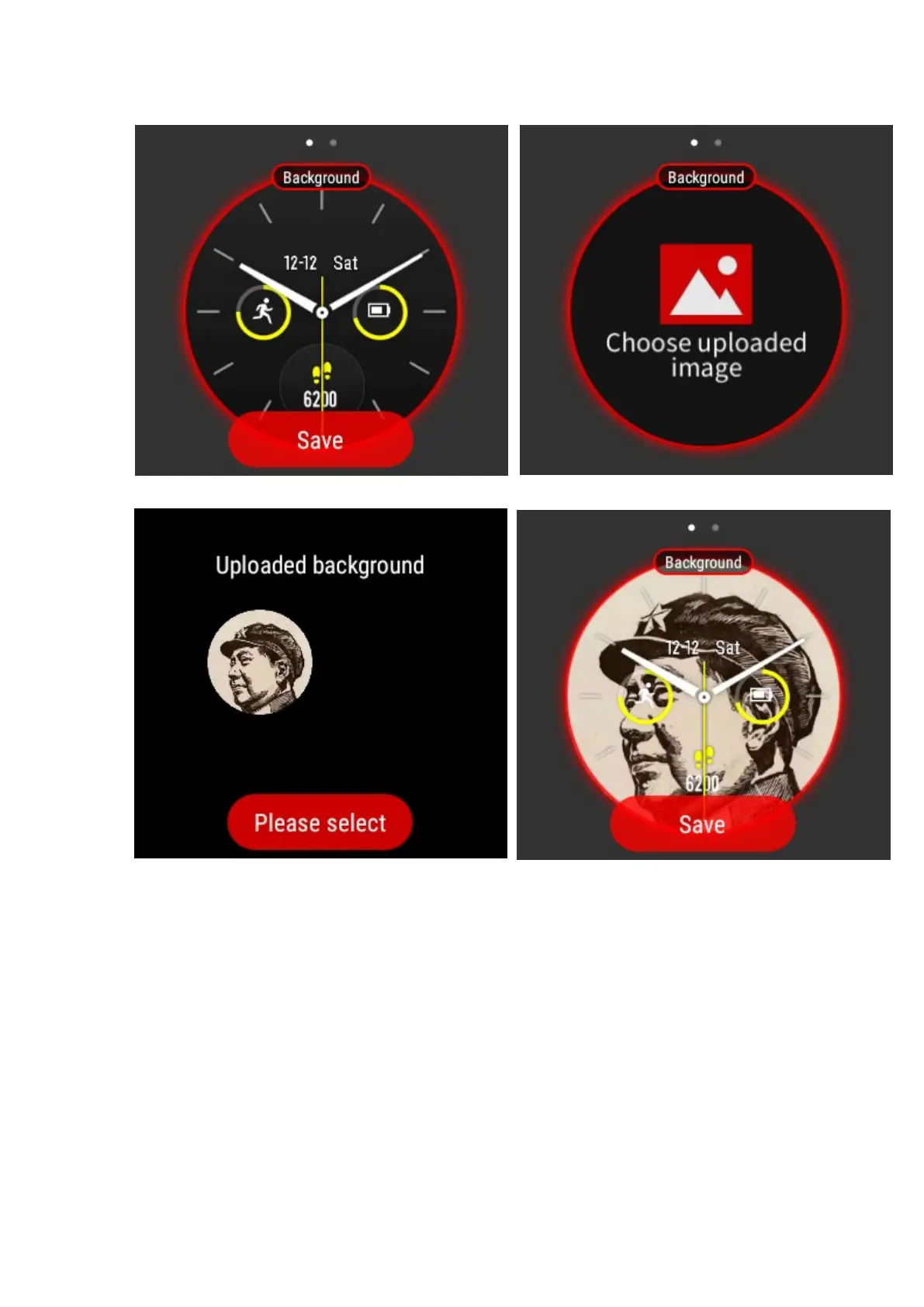On the background watch interface, swipe UP till it shows " Choose uploaded image"