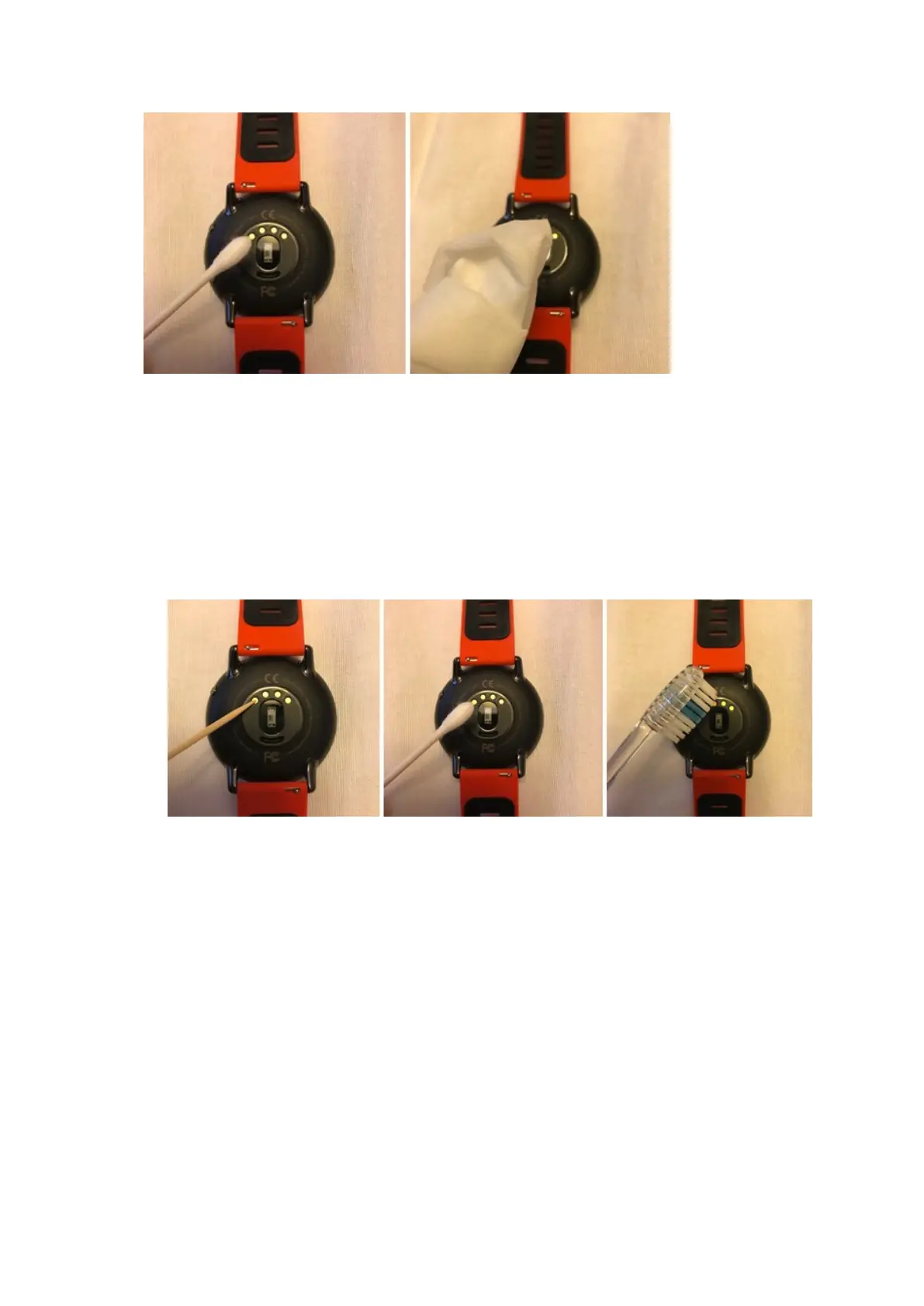 Carefully wipe with a dry cloth or tissue before connecting to tracker for charging.