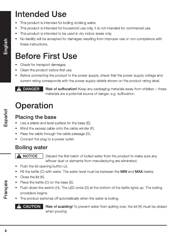 This product is intended for boiling drinking water.