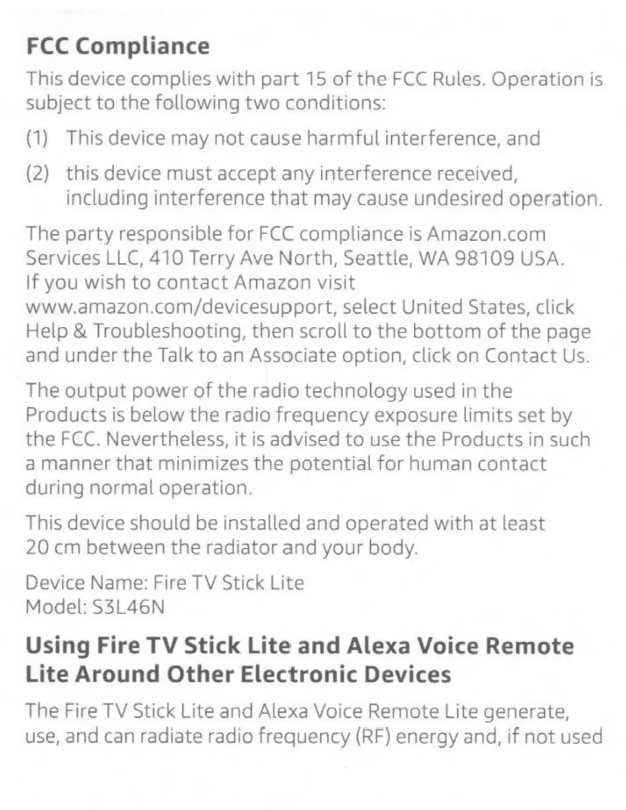 Amazon Fire TV Stick Lite - FCC Compliance