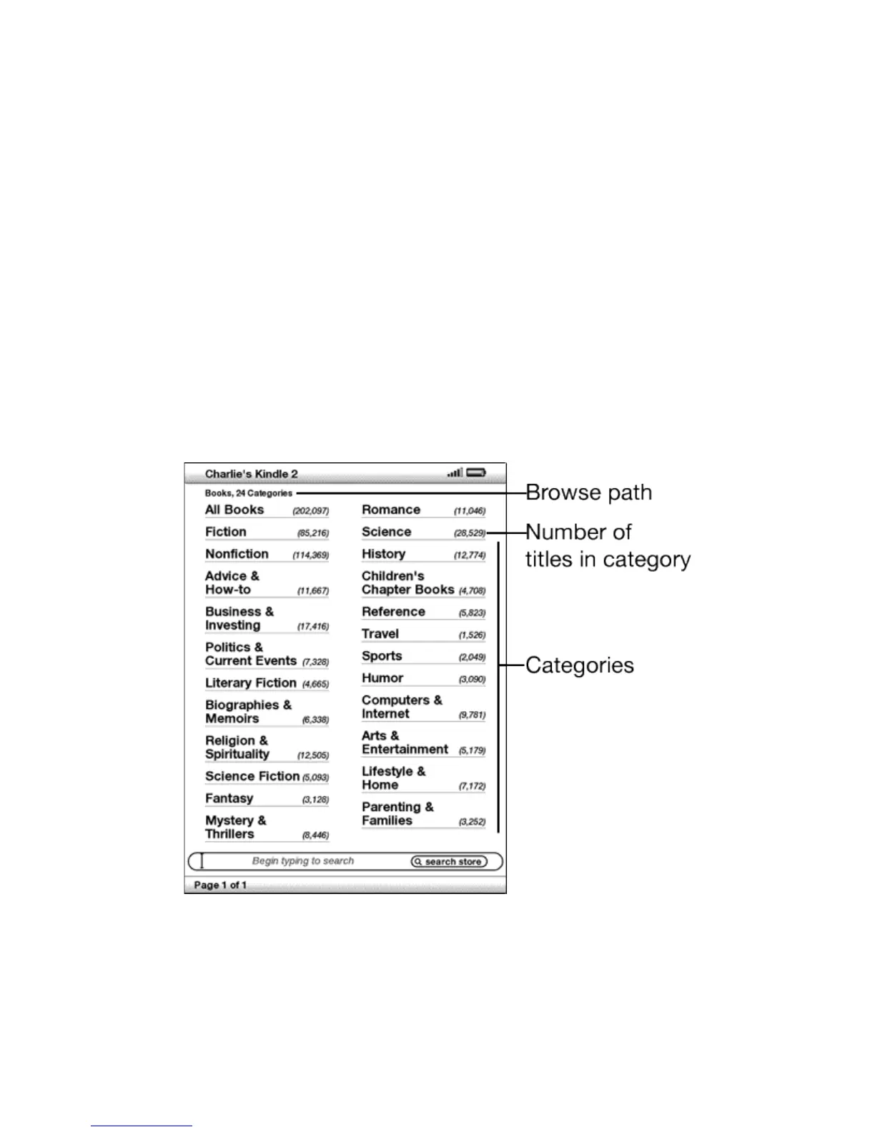 content categories such as books or newspapers. Once inside a category, you can further refine