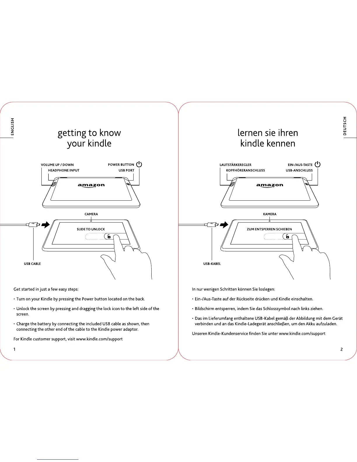 Amazon Kindle Fire HDX - Getting to Know Your Kindle; Initial Setup and Charging; Customer Support