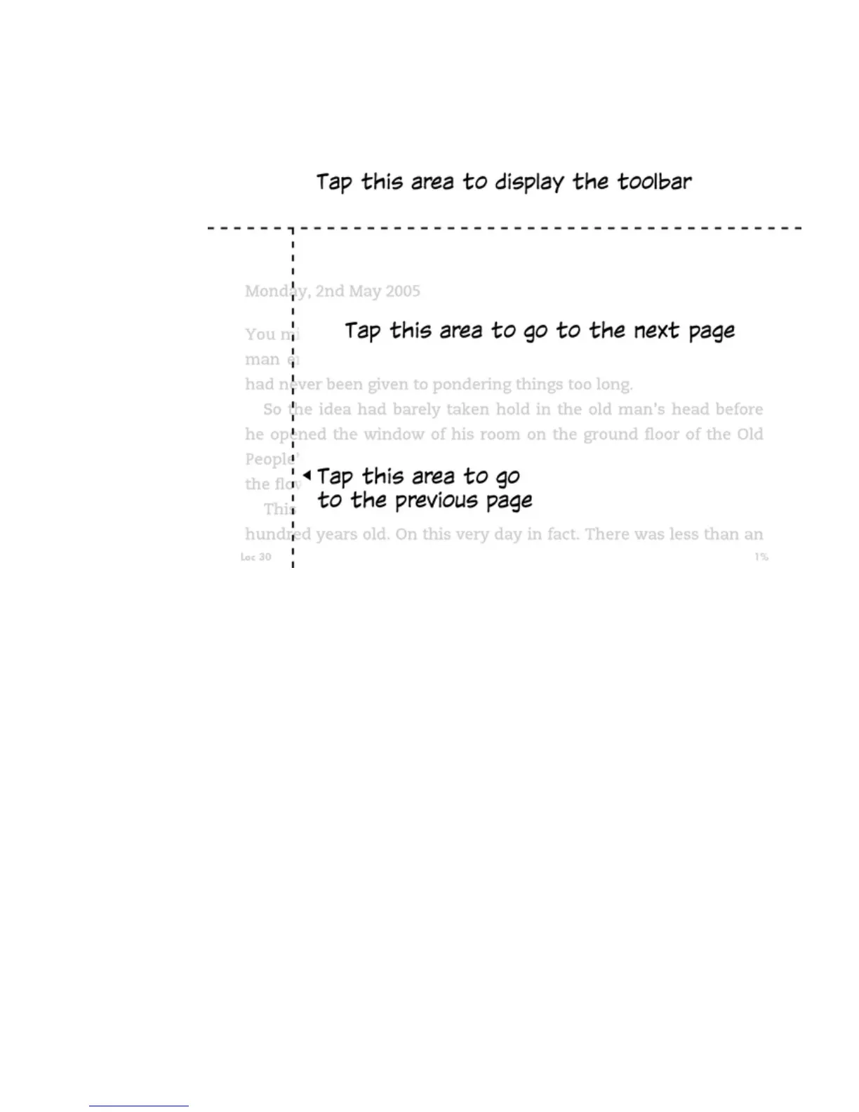 finger from the left to the right across the screen. You can also turn pages using the controls at the