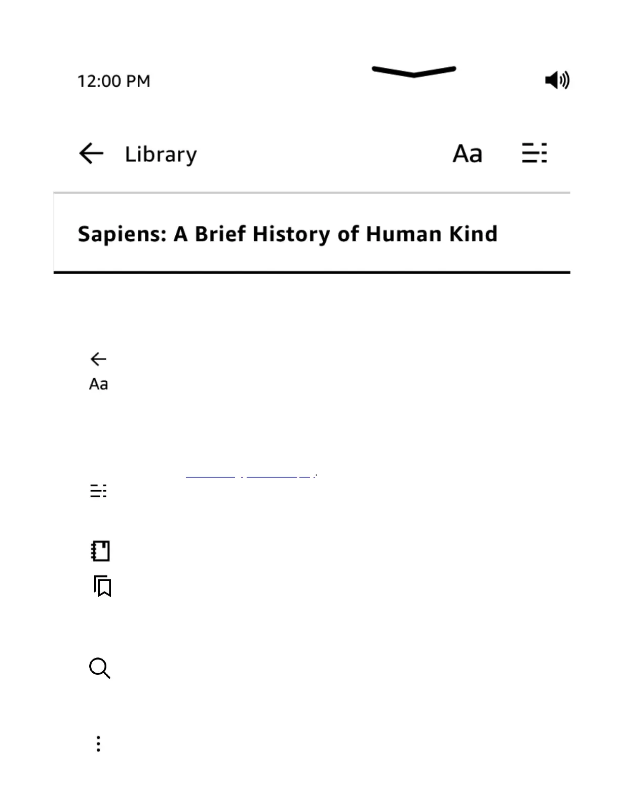When reading, tap the top of the screen to display the In-book, and Reading Navigation toolbar. Toolbar icons vary by