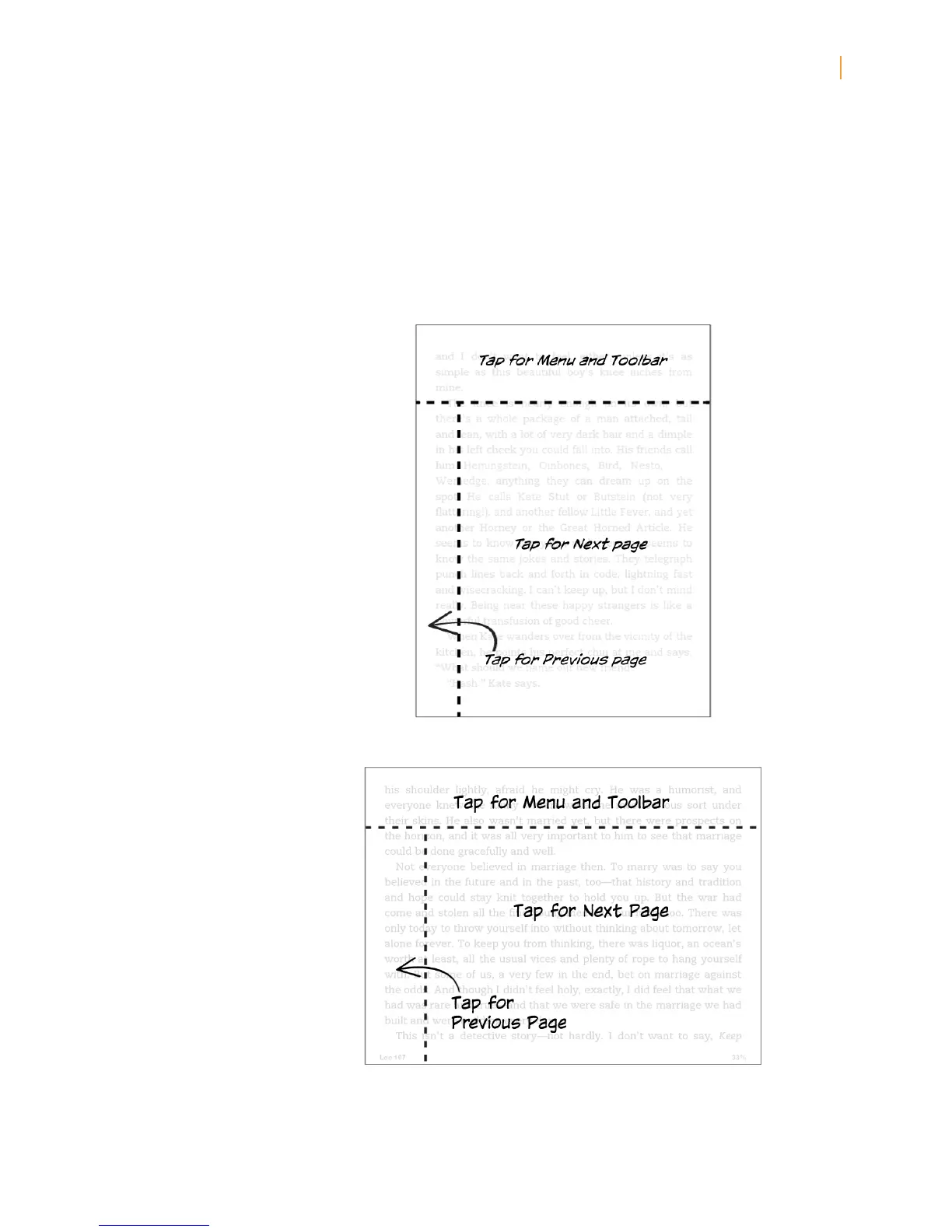 device with your left or right hand. Tap the left side of the screen to go to the previous page.