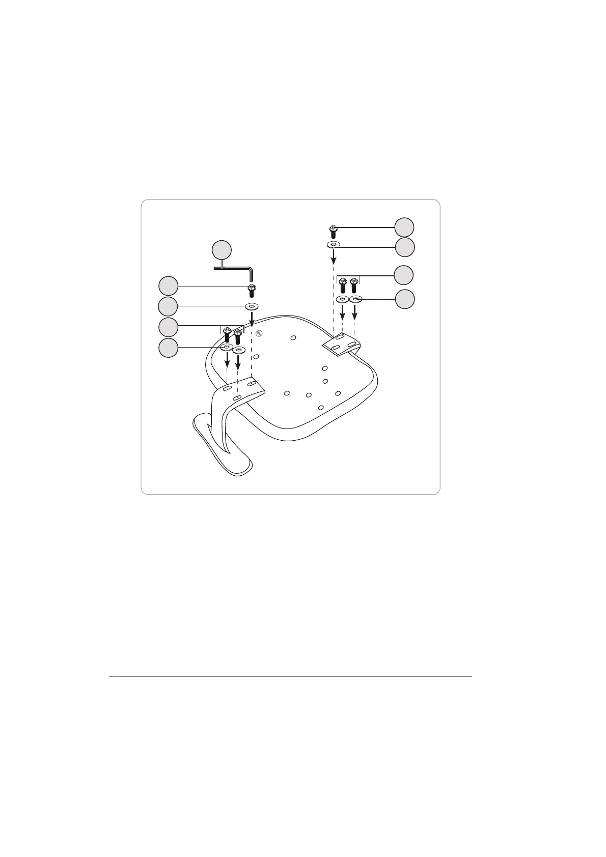 Paso 3: Fije los reposabrazos al asiento con cuatro pernos (D), dos pernos (C) y seis aran-
