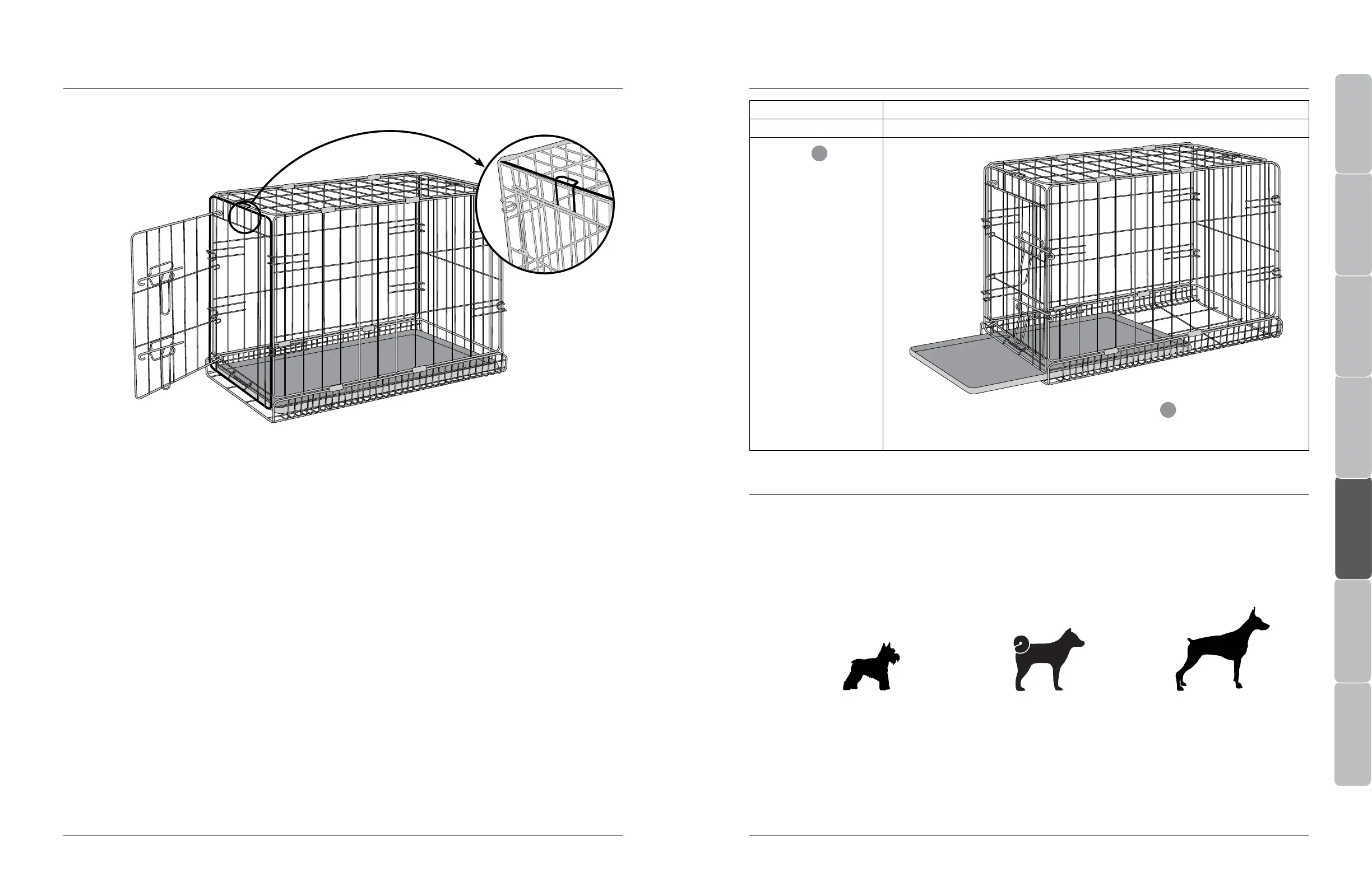 • 为避免划伤地板,应在柔软表面上组装宠物狗板条箱,如地毯上。