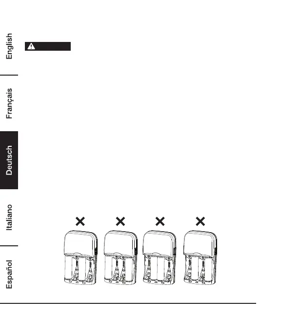 1) Dieses Ladegerät ist zum Aufladen von 2 oder 4 Batterien ausgelegt. Es ist nicht möglich,