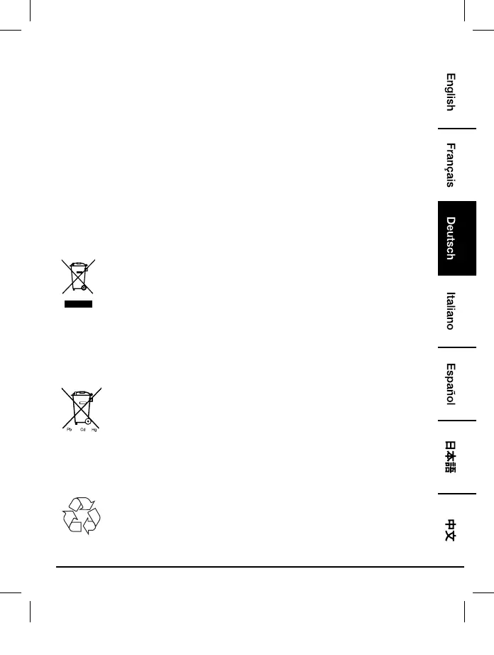 über den normalen Haushaltsmüll entsorgt werden darf. Recyceln Sie das Gerät