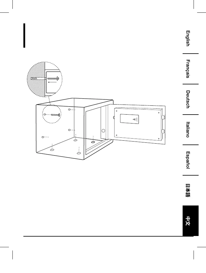 将保险柜移回原位,安装孔对准保险柜的开口。穿过开口,将膨胀螺栓(随附)插入安装孔,并将