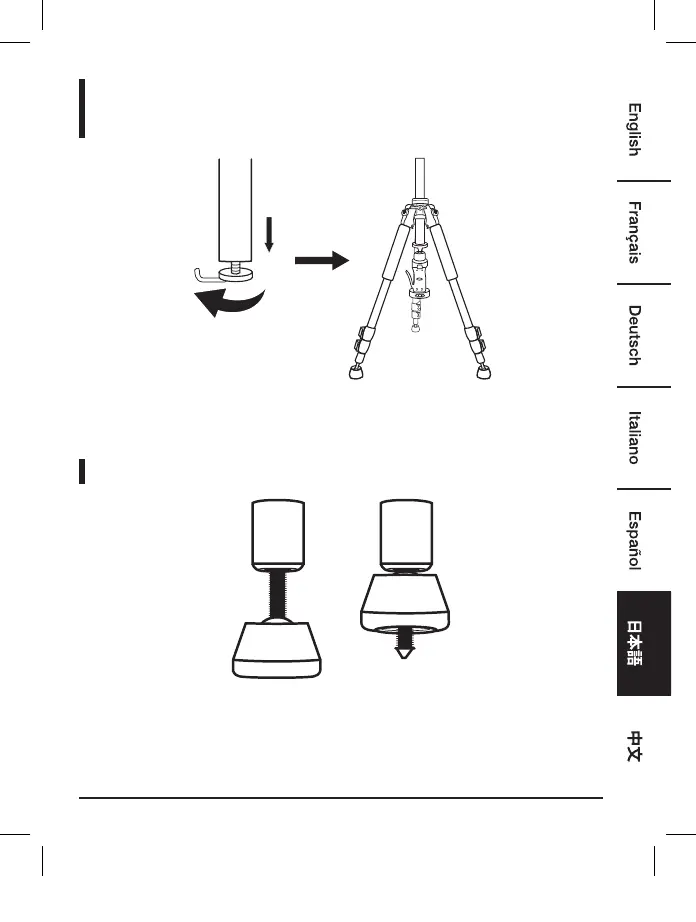 • ローアングルで撮影するには全ての脚を縮め、ホック、次にセンターポールを取り除きます。