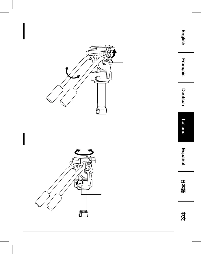 orizzontalmente. Serrare la manopola per bloccare nuovamente la testa del treppiede.