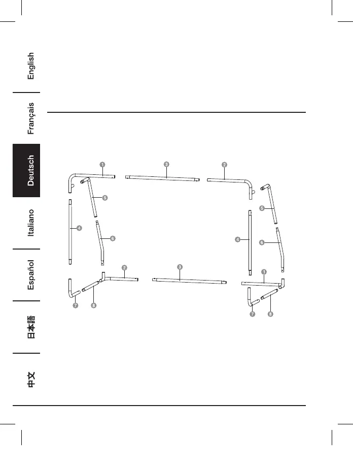 • Lesen Sie die Montageanleitung vollständig durch, um sich mit den Bauteilen vertraut zu