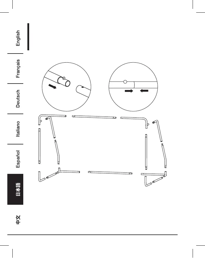 図にあるとおり、全ての長さの管を組み立てます。全ての管が完全に押し込まれていること