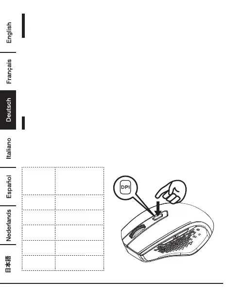 • Die Anzahl, wie oft die DPI-Taste blinkt, zeigt die aktuelle DPI-Einstellung an
