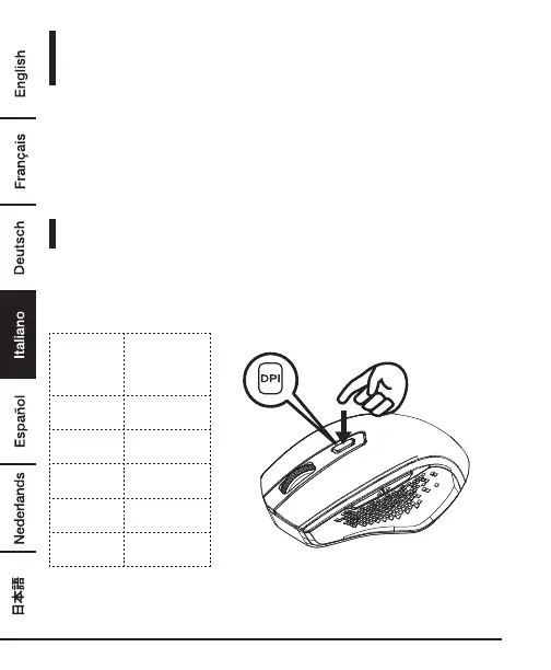 • Il numero di volte in cui il tasto DPI lampeggia indica l’impostazione DPI