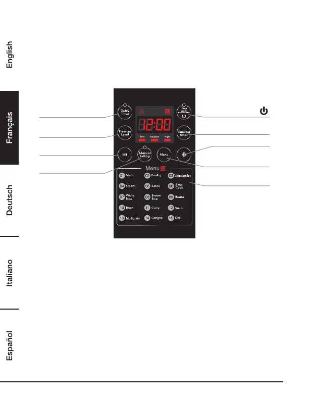 la touche «Pressure Level» («Niveau de pression»). L'autocuiseur doit être en mode «Manual