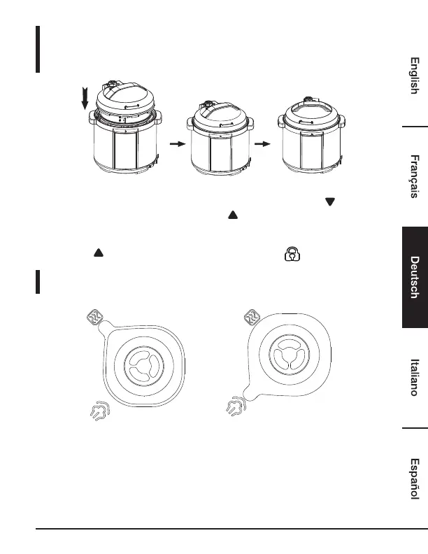 Setzen Sie die obere Abdeckung horizontal auf das Gehäuse des Kochtopfes, drehen Sie die