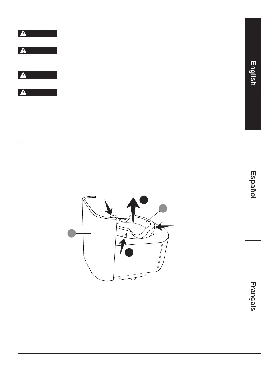 Risk of injury! There are 2 sharp metal tubes inside the lower part