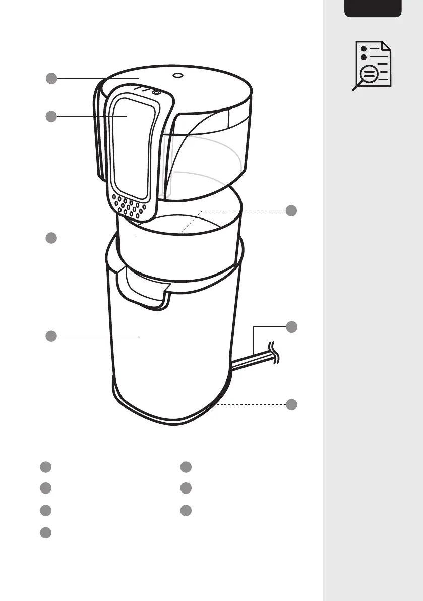 B Power button F Supply cord with a plug