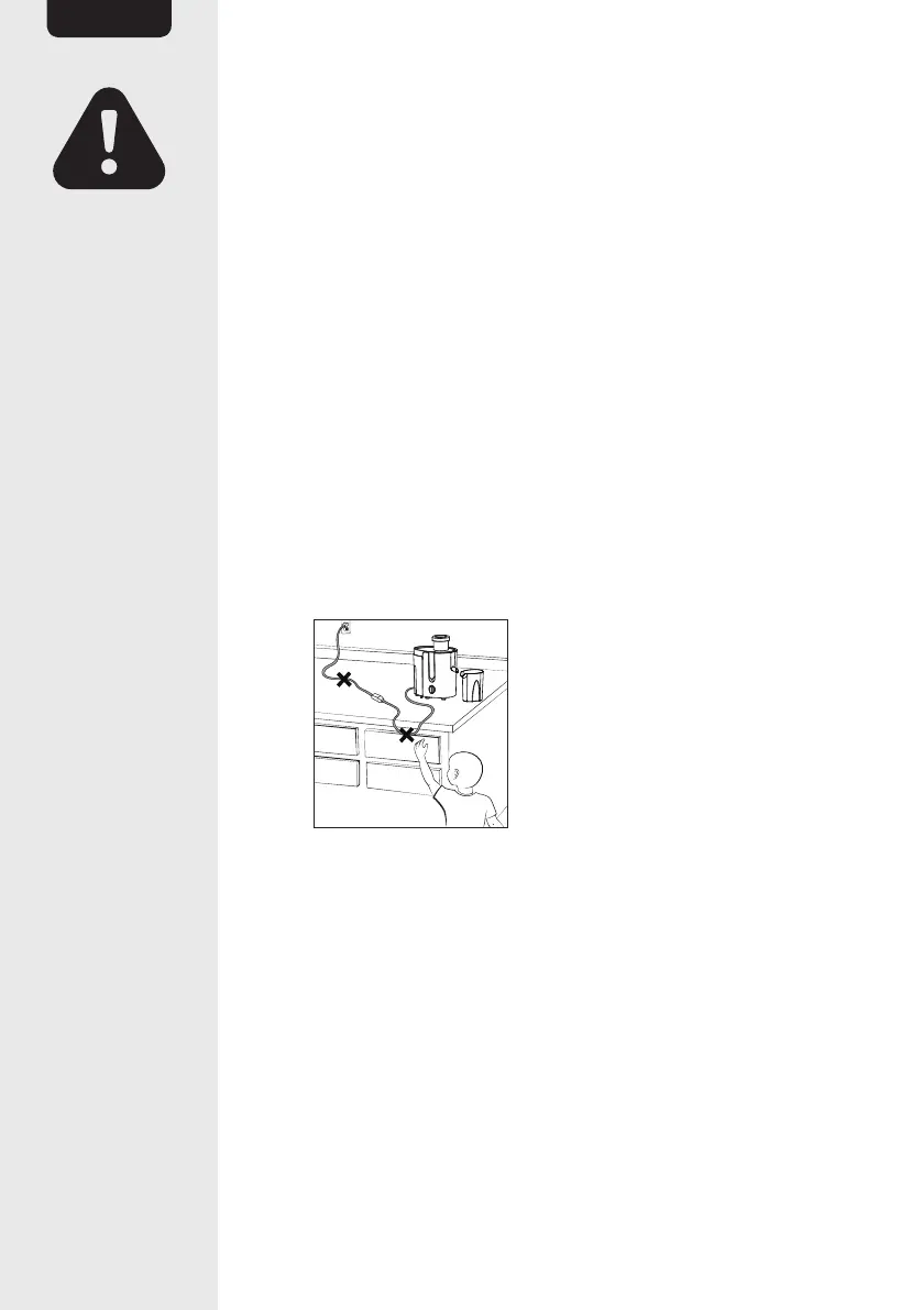• Do not put your fingers or other objects into the juicer opening while