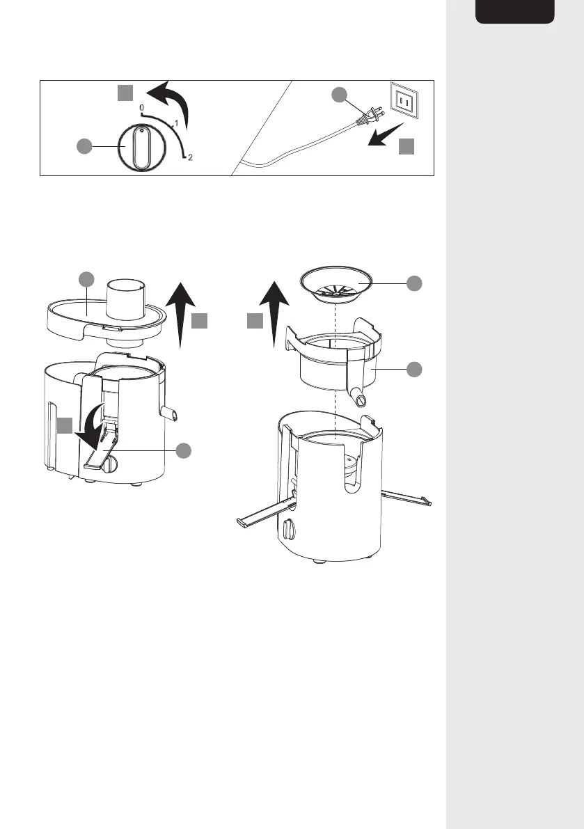 Remove the sieve (C) together with the juice collector (D).