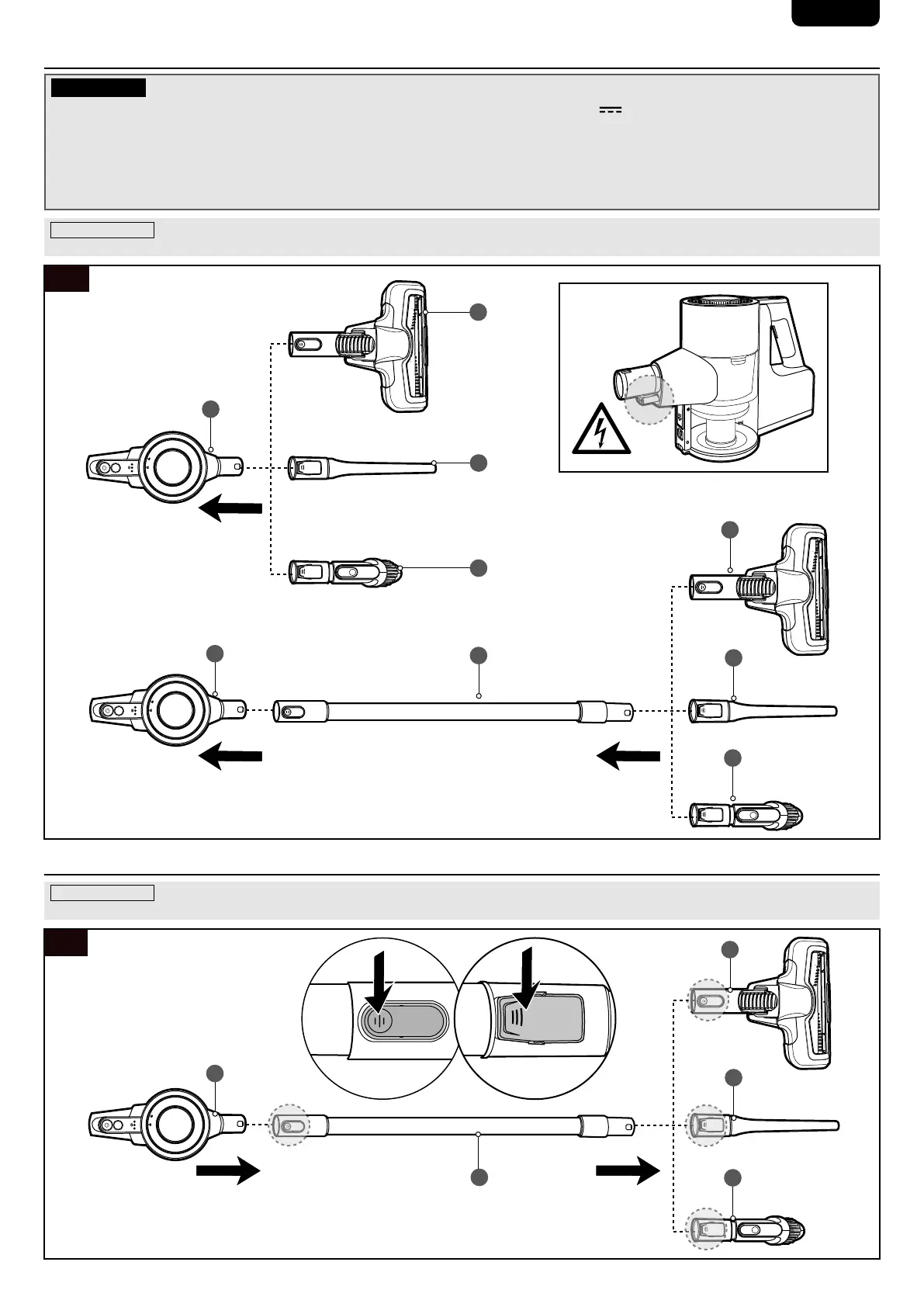d'aspiration (K) entre l'accessoire (L/ M/ N) et l'unité principale (D) (ill. 7).