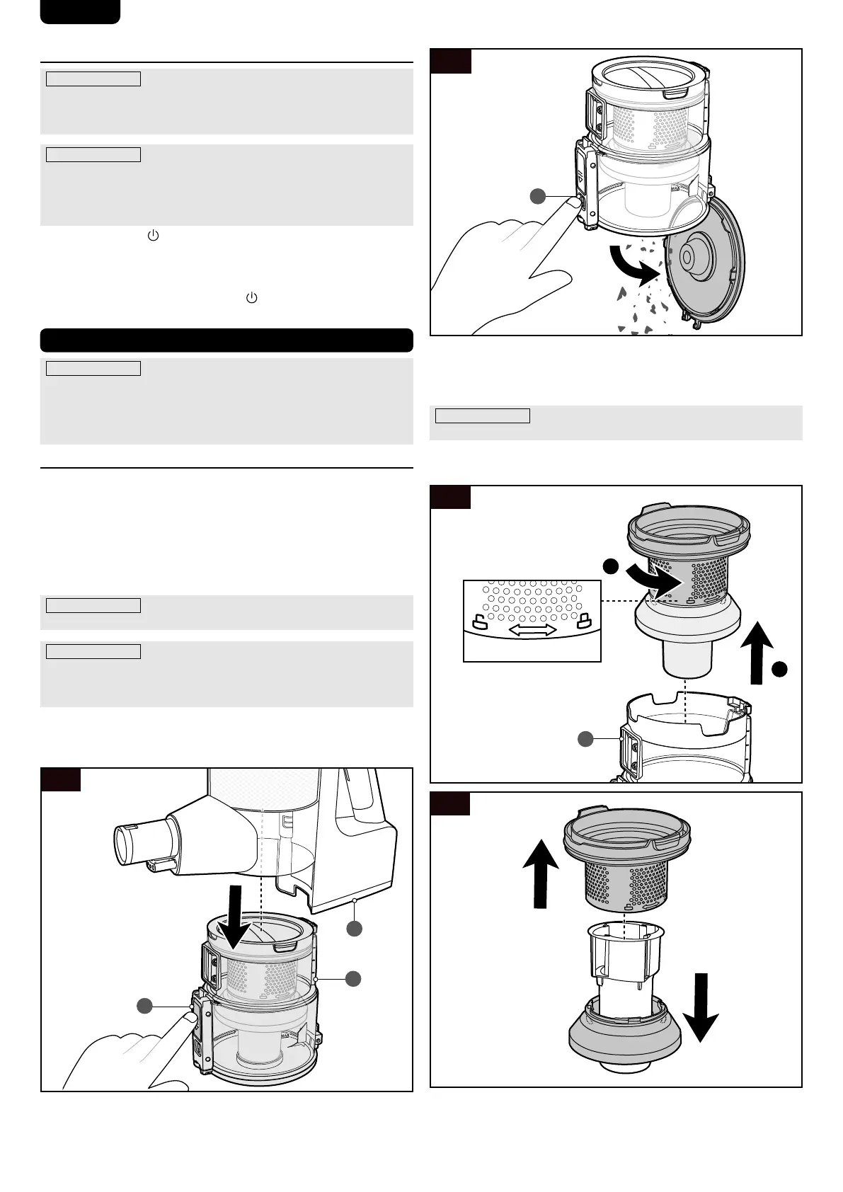 1� Démontez les éléments des ltres du bac à poussière (E)