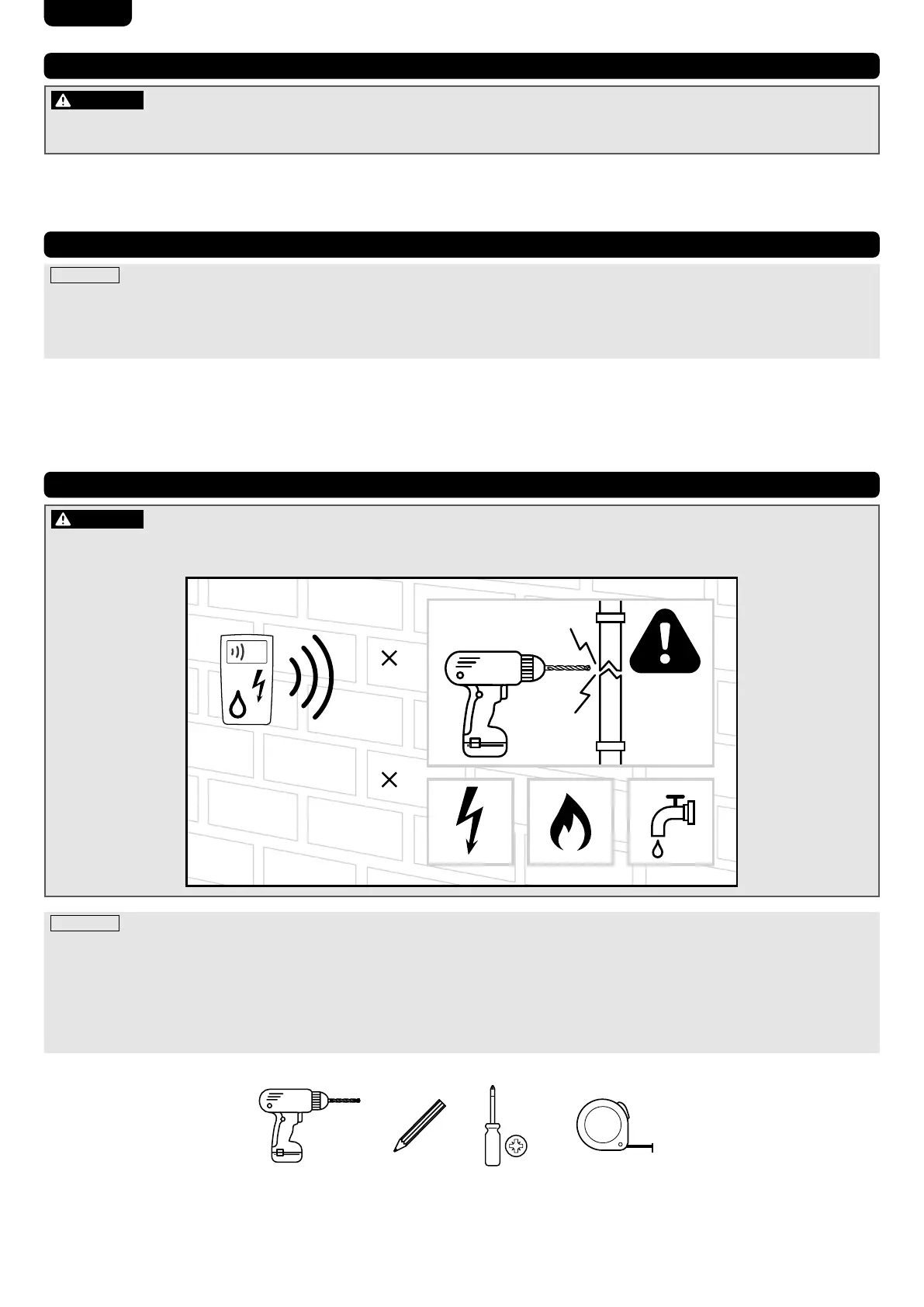 detector de voltaje/metal antes de realizar cualquier perforación, de forma de evitar cualquier riesgo potencial.