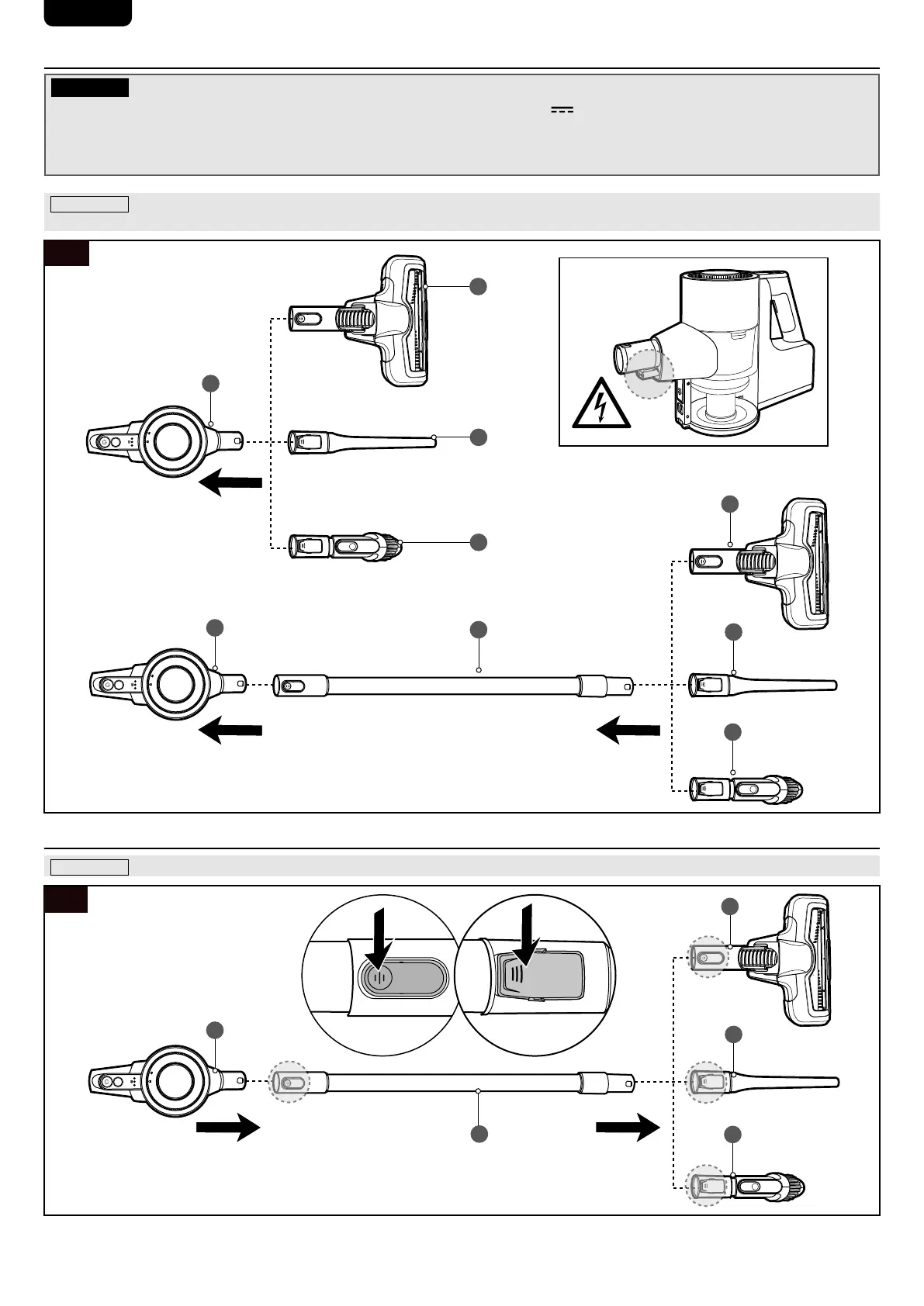 NOTICE Press the release button on the parts and pull to detach them from the main unit (D) and suction hose (K) (Fig. 8).