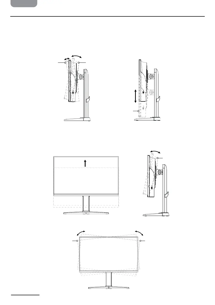 Je kunt de monitor 5° naar voren of 20° naar achteren kantelen. De hoogte is tot 10 cm