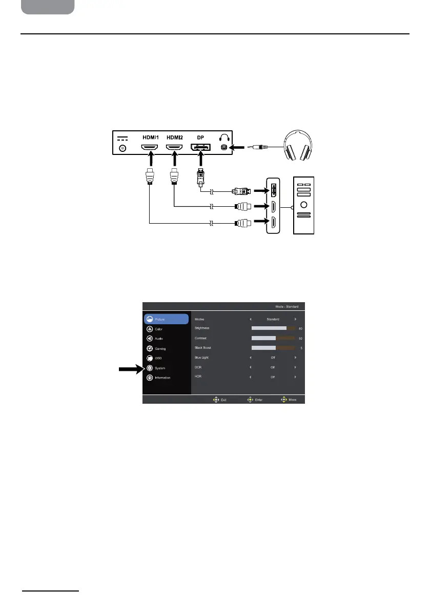 必要に応じ、モニターのメニューのシステム > 入力端子で入力ソースを選択します。詳しくは、