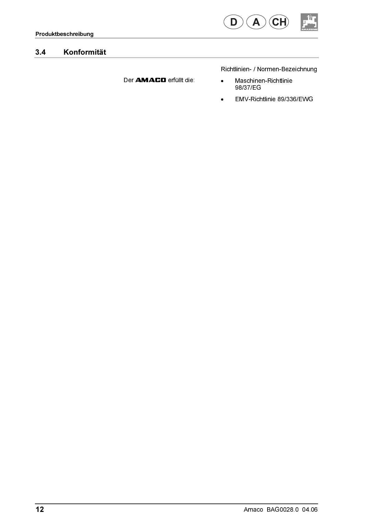 Amazone AMACO - K O N F O R M I T Ä
