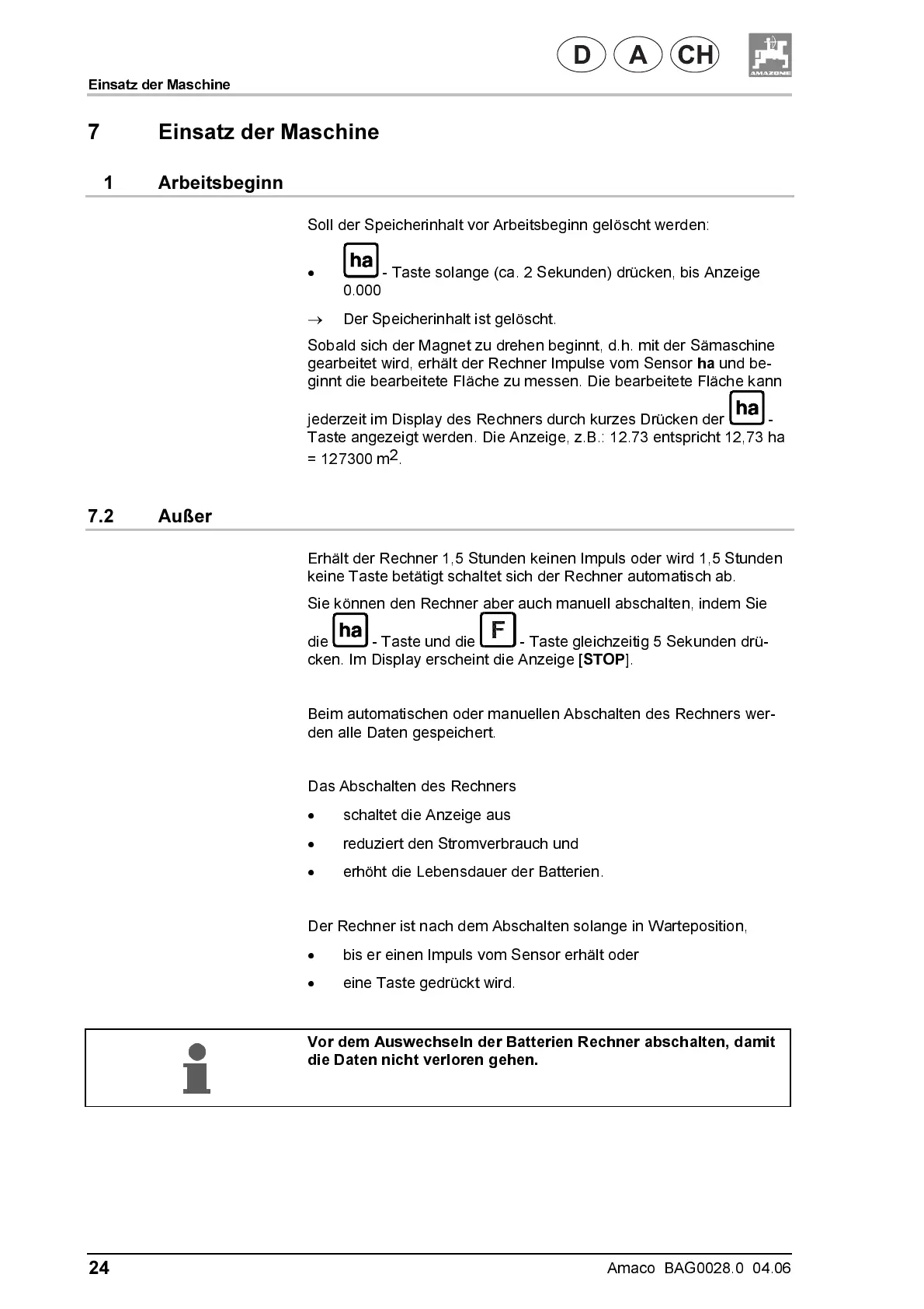 Taste angezeigt w e rden. Di e Anzeige, z.B.: 12.73 entspricht 12,73 ha