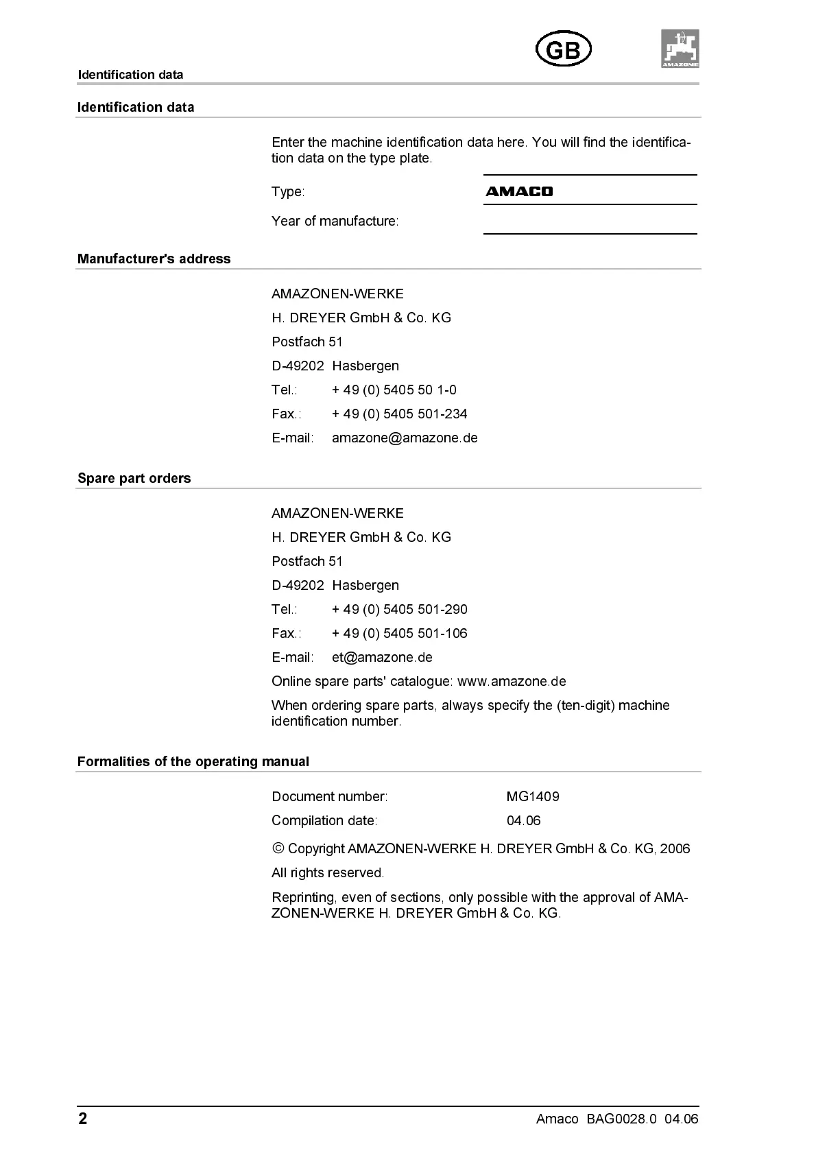 Online spare parts' catalogue: www.amazone.de