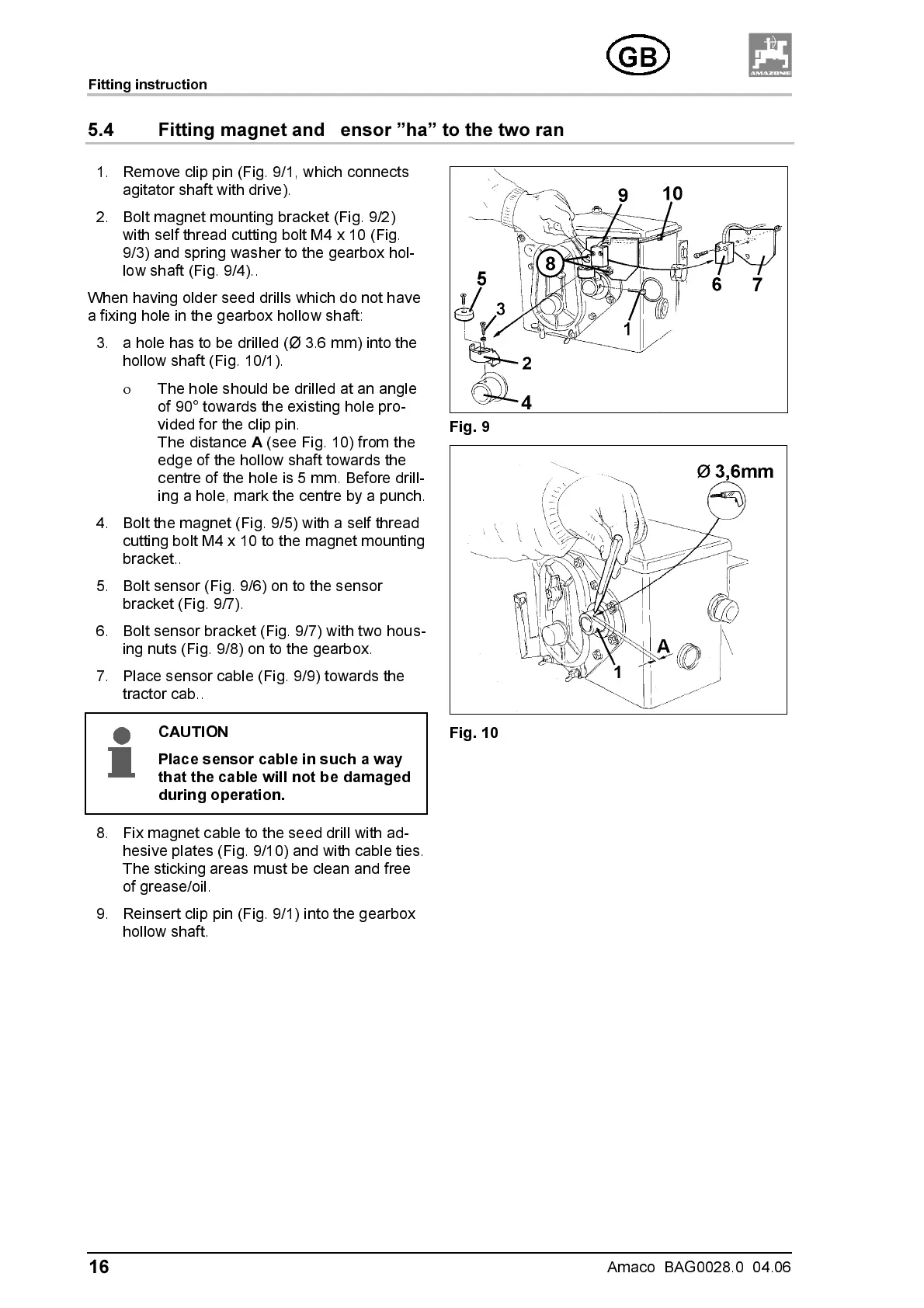 7. Place sensor cable (Fig. 9/9) towards the