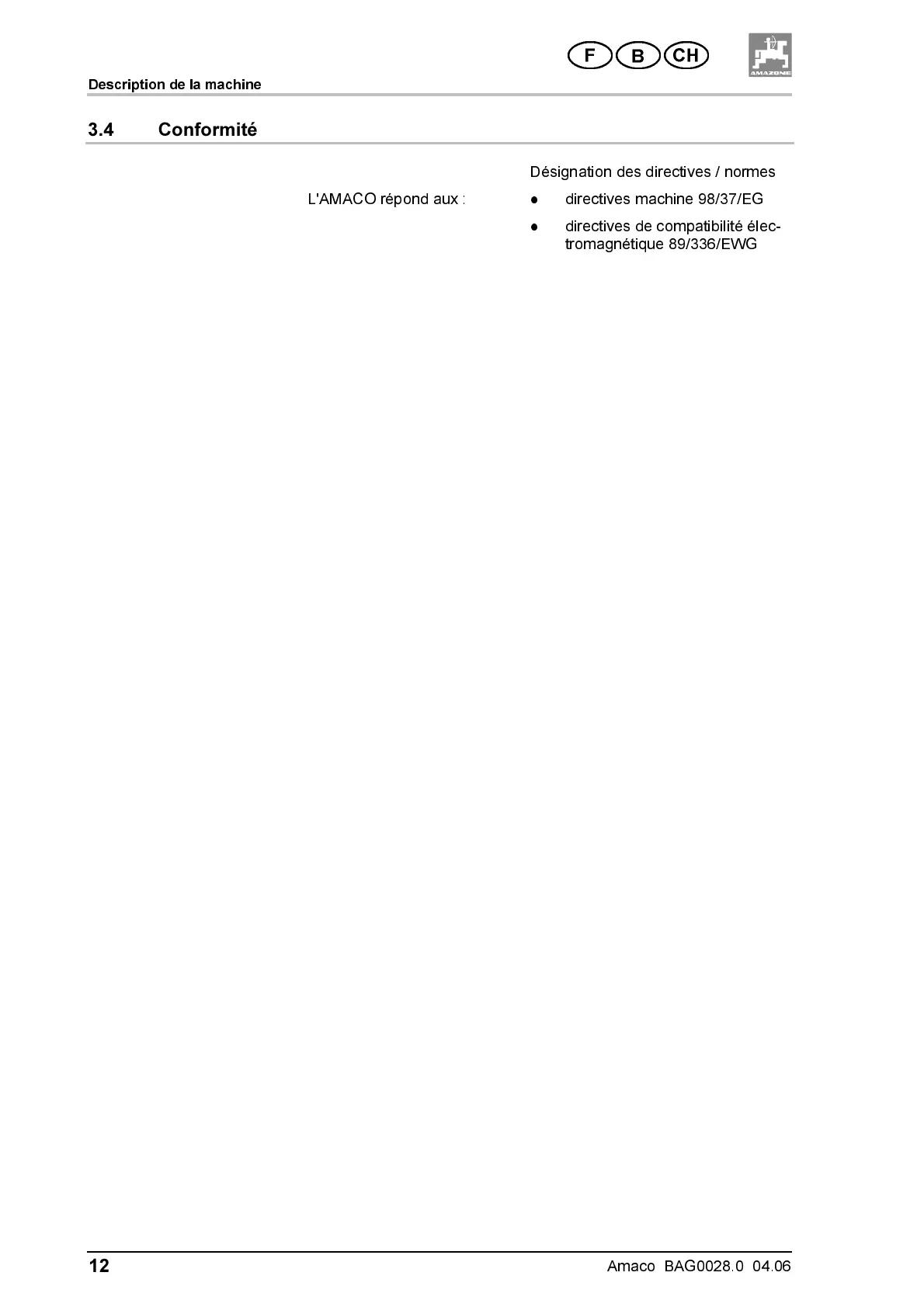 L'AMACO répo nd aux : directives machine 98/37/EG